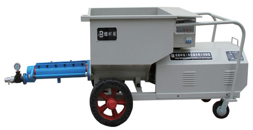 該泵結(jié)構(gòu)新穎、構(gòu)思獨特;避免了灌注稠漿較困難的不足,使用安全方便、效率高。本機主要由電動機減速器、輸漿體、增壓蝸桿、增壓定子、測壓、料斗、電控系統(tǒng)等組成,當用于噴護時,還包括噴射器,其特點如下: