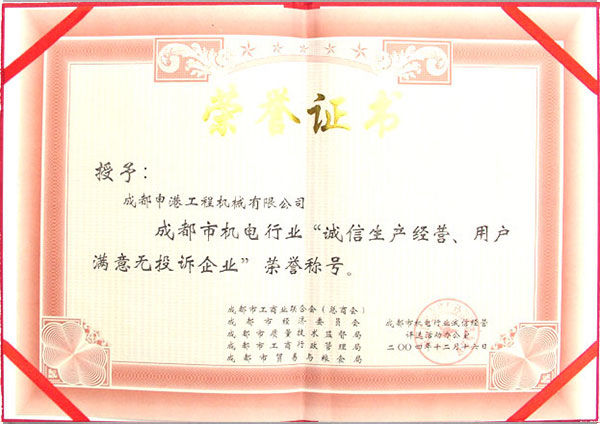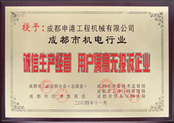 2004年度誠信生產經營,用戶滿意無投訴企業